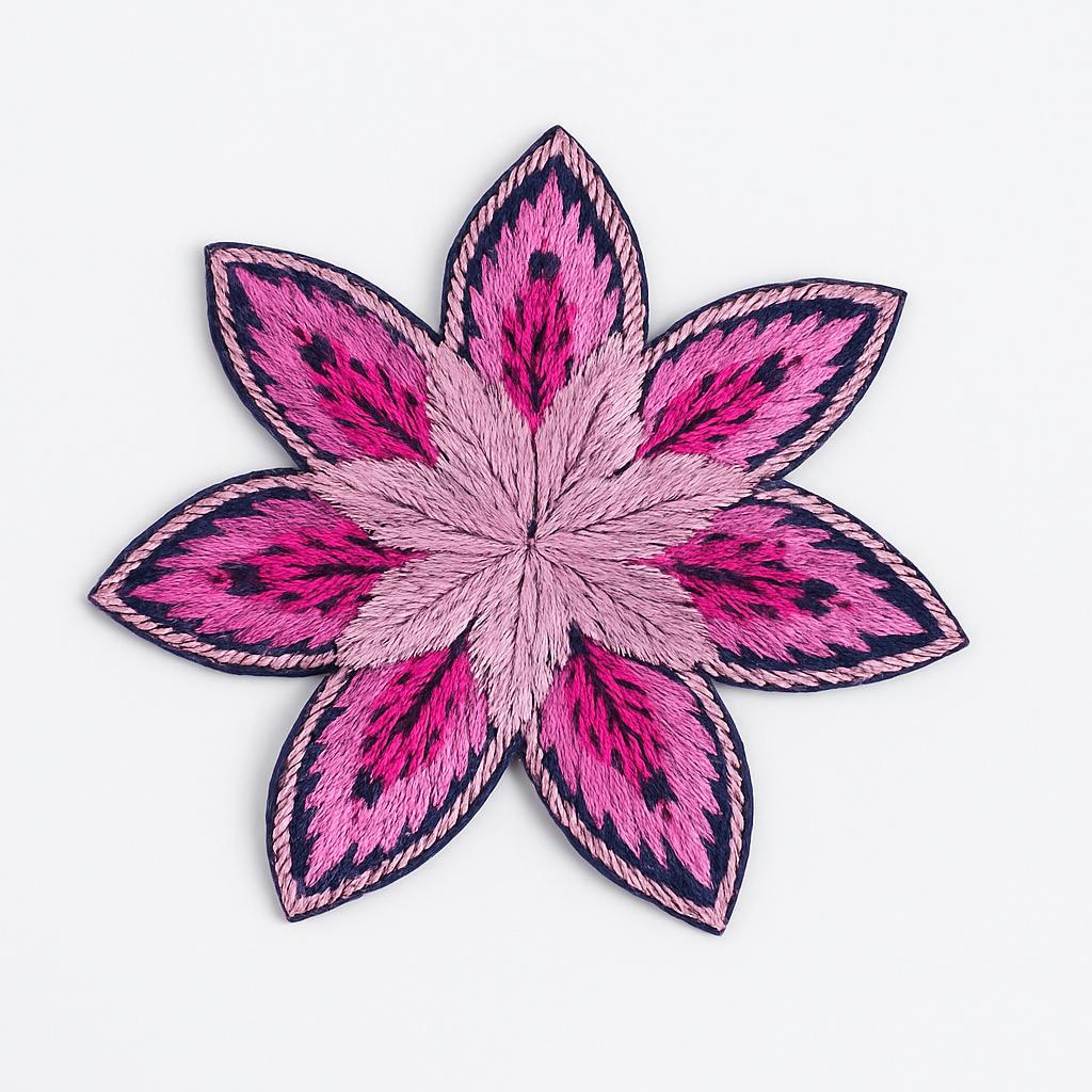 ✨ Stunning 6-petal embroidered flower patch in vibrant shades of pink, black, and white.