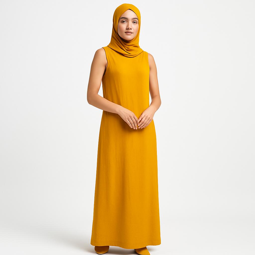 Be the first to review “πΌ Sleeveless Hijab Dress β Mustard Yellow Boldness πΌ” Cancel reply