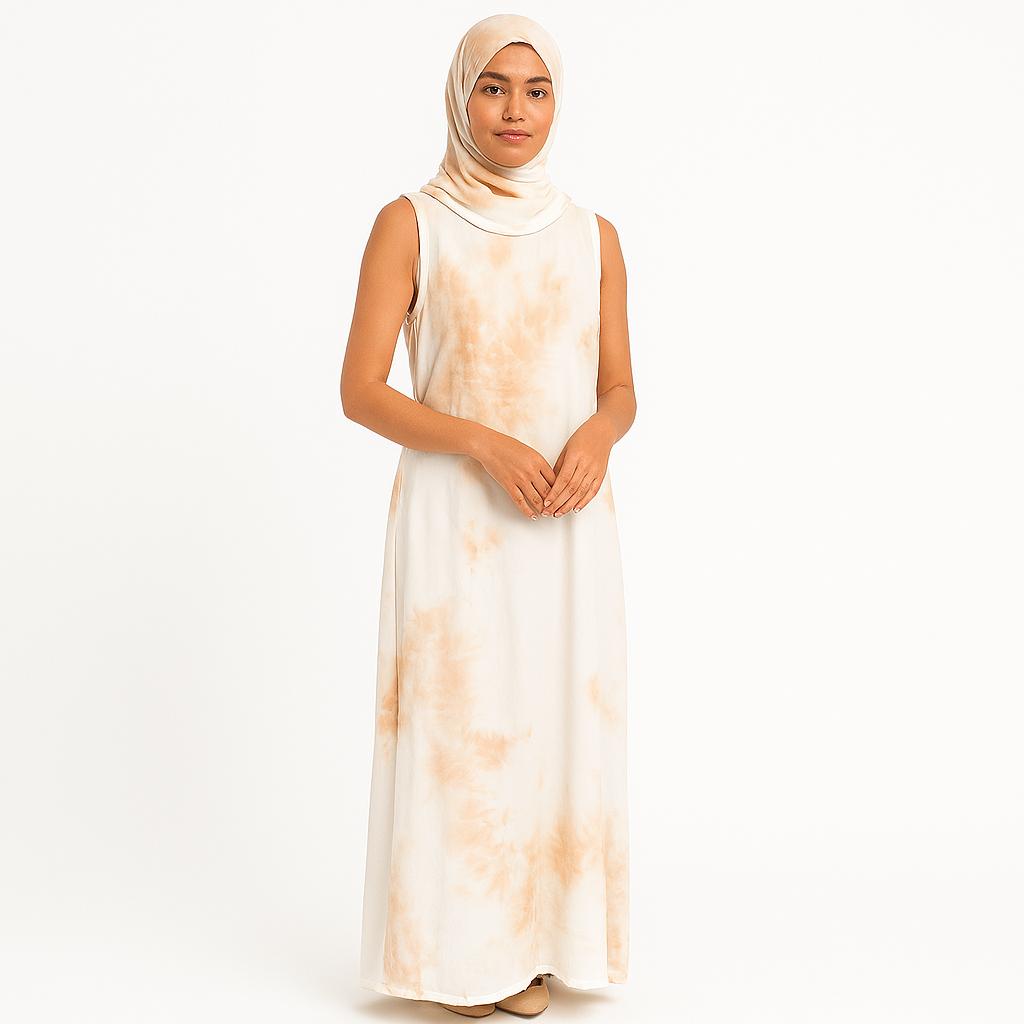 Be the first to review “π€β¨ Sleeveless Hijab Dress β White with Golden Tie-Dye Accents ⨔ Cancel reply