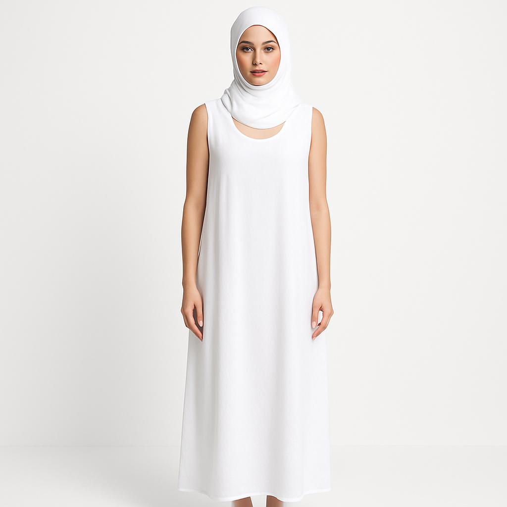 Experience simplicity and grace with our Pure White Sleeveless Hijab Dress, crafted for modesty, comfort, and effortless everyday style. Whether layered under an abaya or worn on its own at home, this piece offers unmatched softness and breathability.