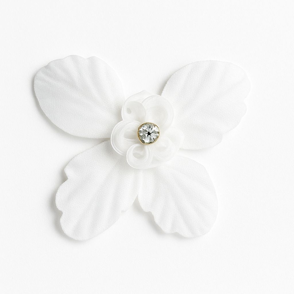 ✨ Elegant 4-petal fabric flower applique with a sparkling crystal stone in the center.